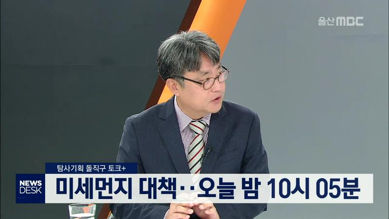 오늘(11\/14) 밤 10시에 방송되는 돌직구 토크 플러스에서는 울산의 미세먼지 대책을 알아봅니다. 유니스트 도시환경공학부 송창근 교수는 울산은 공단과 항만 등에서 배출하는 특수한 미세먼지로 나타나고 있어 정부 정책과는 다른 별도의 대책을 수립해야 한다고 주장했습니다. 또 울산환경운동연합 이상범 사무처장은 울...
