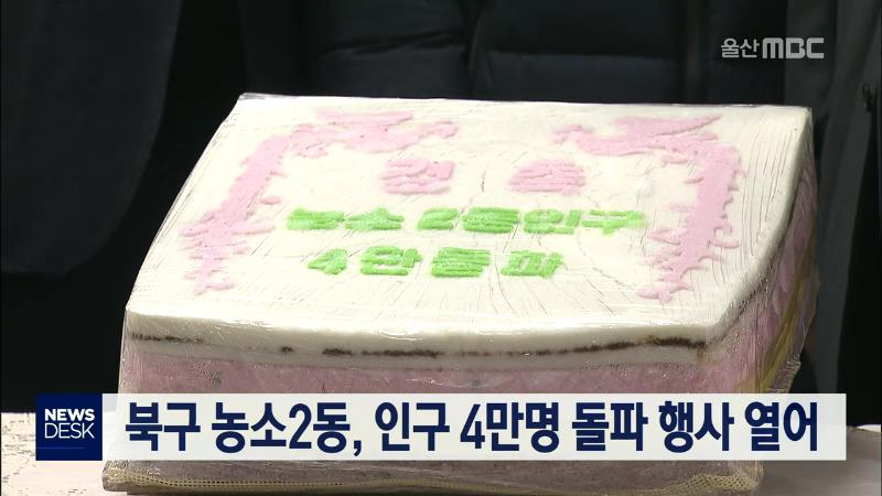 북구에서 처음으로 인구 4만명을 넘어선 농소2동이 오늘(11\/14) 4만번째 전입 가족에게 꽃다발을 선물하는 환영식을 열었습니다. 농소2동은 신규 아파트 입주가 시작되면서 북구 8개 동 가운데 가장 많은 인구 수를 기록하고 있으며 현대모비스의 이화산업단지 입주 확정으로 앞으로도 증가세가 계속될 전망입니다. 북구는...