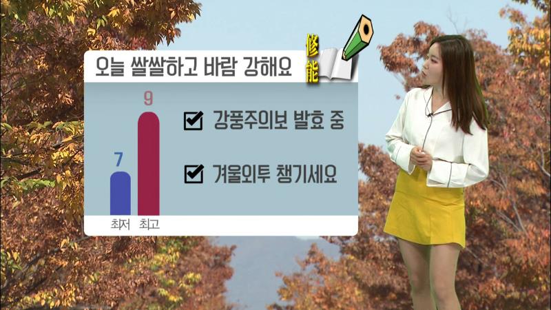 1) 수능일인 오늘(14일)은 대체로 맑겠습니다. 현재 울산의 기온 7도를 나타내고 있는데요, 여기에 현재 강풍주의보가 발효 중입니다. 바람도 강하게 불어 체감온도는 5~10도 정도 더 낮겠습니다. 오늘이 대입 수능시험 날인만큼 수험생분 들은 더 따뜻하게 입으셔야겠습니다. 2) 내일도 대체로 맑은 날씨가 예상됩니다. ...