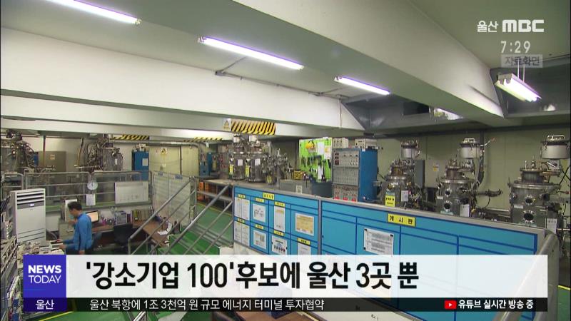 ◀ANC▶ 소재·부품·장비 '강소기업 100곳'후보에 울산은 단 3곳만 포함돼 산업도시 울산이라는 이름이 무색한 지경입니다. 지난달 고용률은 상승하고 실업률은 낮아졌습니다. 경제브리핑, 서하경기잡니다. ◀END▶ ◀VCR▶ 정부가 소재·부품·장비 '강소기업 100'을 선정하기 위해 1차 평가를 벌인 결과 301곳으로 압축됐...