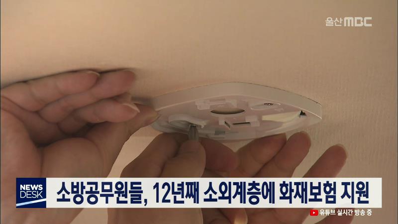 울산 소방공무원들이 12년째 소외계층에 주택화재보험 가입을 지원해오고 있습니다. 이들은 매달 만원씩을 모아 지금까지 8천600여세대에 보험료 7천900만원을 지원했습니다. 소위계층이 재난을 입었을 경우를 대비해 기본적인 생계를 돕기 위해섭니다.\/\/