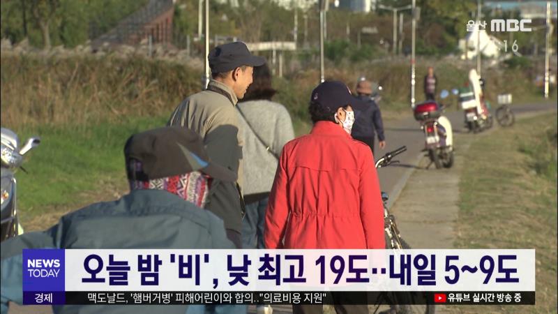 1) 오늘은 비 소식이 들어있습니다. 늦은 오후부터 밤 사이 비구름대가 지나겠는데요, 예상 강수량은 5mm 미만으로 비가 길게 이어지지는 않겠습니다. 다만 돌풍과 천둥 그리고 번개를 동반한 요란한 비가 지날 것으로 보입니다. 2) 수능일인 내일 날씨는 대체로 맑겠습니다. 다만 내일 울산의 아침 최저 기온이 5도, 낮 ...