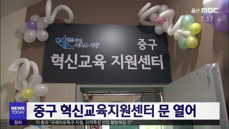 지속가능한 마을교육 공동체를 만들기 위한 '혁신교육지원센터'가 중구에 문을 열었습니다. 중구와 울산시교육청이 공동 설치한 센터에는 마을교육 학습실과 동아리방, 청소년 쉼터 등이 마련돼 있습니다. 중구 혁신교육지원센터는 앞으로 마을 교육공동체와 청소년 동아리 활동을 중점적으로 지원하는 역할을 맡게 됩니다....