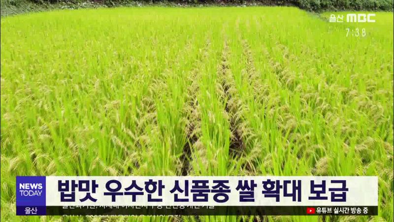 울산농업기술센터는 밥맛이 우수한 신품종 쌀을 확대 보급하기로 했습니다. 밥맛이 우수한 2018년 신품종은 새칠보벼와 영진벼, 남찬벼, 안평벼 등으로 울산에서는 1헥타르 면적 정도에 시범 재배하고 있습니다. 농업기술센터는 실증시험 평가회 등을 통해 우리 지역 토질과 입맛에 맞는 신품종을 육성하겠다고 밝혔습니다....