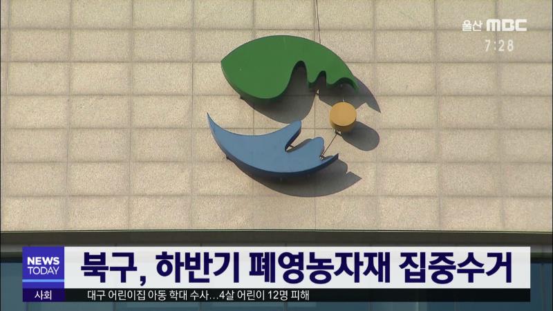 북구청이 농경지 오염원과 미세먼지의 원인 물질로 꼽히는 폐영농자재를 대상으로 오는 24일까지 집중 수거사업을 실시합니다. 북구는 이 기간 동안 기간제근로자를 채용해 폐비닐과 농약용기, 폐농기계 등을 수거해 마을별로 모아서 한국환경공단에 수거를 의뢰한다는 계획입니다.\/\/