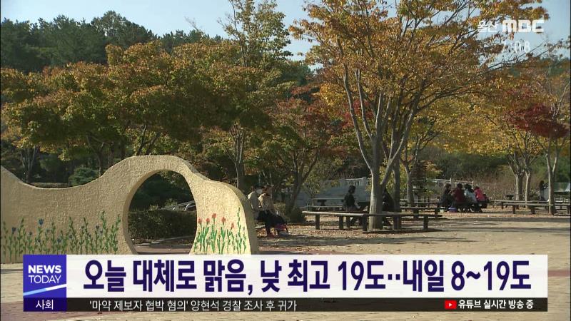 밤사이 울산은 7.1mm의 비가 내린 가운데 오늘(11\/11)은 대체로 맑겠으나 낮 한때 구름이 많겠습니다. 오늘 낮 최고 기온은 19도로 어제보다 2도 정도 높겠습니다. 내일은 고기압의 영향으로 대체로 맑겠으며, 기온은 아침 최저 8도 낮 최고 19도의 분포를 보이겠습니다. 울산기상대는 수능 하루 전인 오는 수요일 밤에 5m...