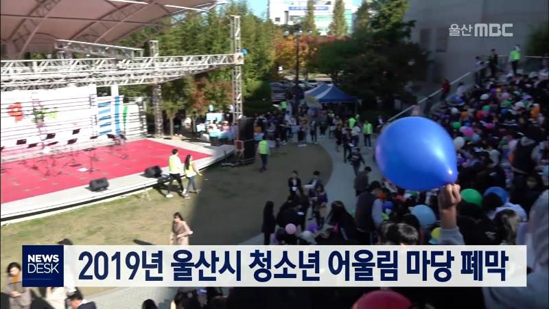 '2019년 울산시 청소년 어울림마당' 폐막식이 오늘(11\/9) 울산문화예술회관 야외공연장에서 열렸습니다. 청소년 어울림마당은 지난 5월부터 문화축제와 음악축제, 드론축제, 북콘서트 등 모두 11차례에 걸쳐 다양한 분야의 체험활동으로 진행됐습니다. 이 행사는 울산흥사단이 주관하며 공업탑청소년문화의집과 문수청소년...