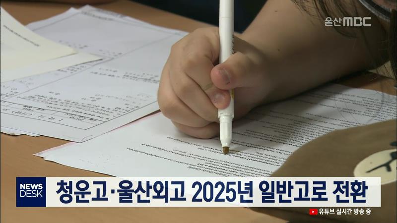 교육부의 자사고·외고의 일반고 전환방침에 따라 현대청운고와 울산외고가 2025년부터 일반고로 전환됩니다. 울산시교육청은 내년 재지정 평가 대상인 울산외고의 재지정 평가를 하지 않을 예정이며, 2025년 2월까지 재지정된 현대청운고도 2024년 재지정 심사를 하지 않는다고 밝혔습니다. 다만 2024년까지는 현재의 지위...
