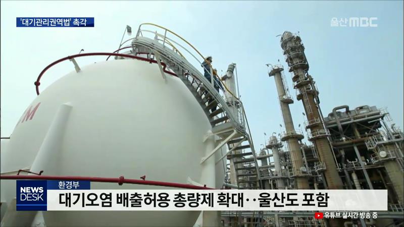 ◀ANC▶ 미세먼지를 줄이기 위해 수도권에 적용됐던 대기관리권역법이 내년 4월부터 울산에도 적용됩니다. 각 사업장별로 대기오염물질 배출 허용치를 정해 미세먼지를 줄이는게 핵심인데, 시설 개선이 시급한 울산지역 산업계에는 비상이 걸렸습니다. 이용주 기자. ◀END▶ ◀VCR▶ 환경부가 입법예고한 대기관리권역법...