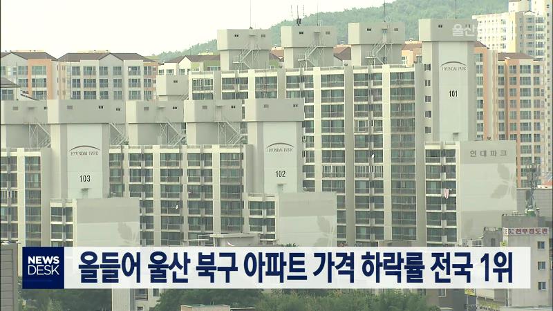 최근들어 울산지역 아파트 가격이 반전하고 있지만 10월까지 울산 북구의 아파트 가격 하락률이 전국에서 가장 높은 것으로 나타났습니다. KB부동산의 주택가격현황에 따르면 울산 북구는 지난 1월 3.3 제곱미터 당 796.6만 원 수준이었지만, 10월에는 728.1만 원 으로 내려가 8.6% 하락한 것으로 집계됐습니다. 또 울주군...