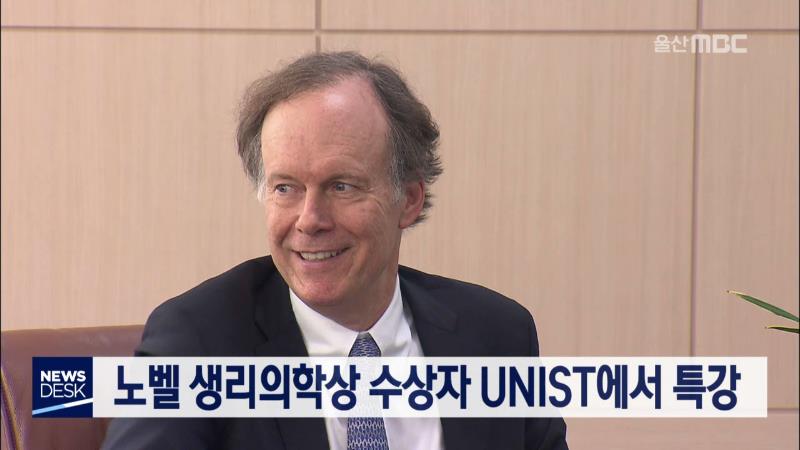 올해 노벨 생리의학상 공동 수상자인 윌리엄 케일린 미국 하버드 의대 교수가 오늘(11\/5) UNIST를 방문했습니다. 케일린 교수는 학생들을 대상으로 한 특강에서 브이에치엘(VHL) 종양 억제 단백질과 산소 감지, 암세포 신진대사 등 최근 노벨상을 받은 연구에 대해 소개했습니다. 또 기초과학연구원 연구원들과 세미나를 ...