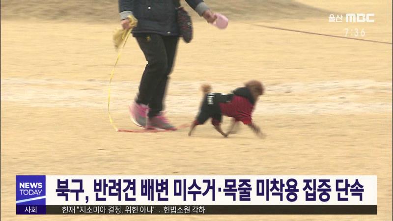 북구가 이달 말까지 동천강변과 매곡천 일대, 아파트 인근 산책로에서 반려견 배변 미수거와 목줄 미착용에 대한 집중 단속을 벌입니다. 북구청은 우선 현수막을 통해 계도활동을 하고 개선되지 않을 경우 배설물 미수거에는 5만원, 목줄 미착용에는 20만원의 과태료를 부과할 것이라고 밝혔습니다. \/\/