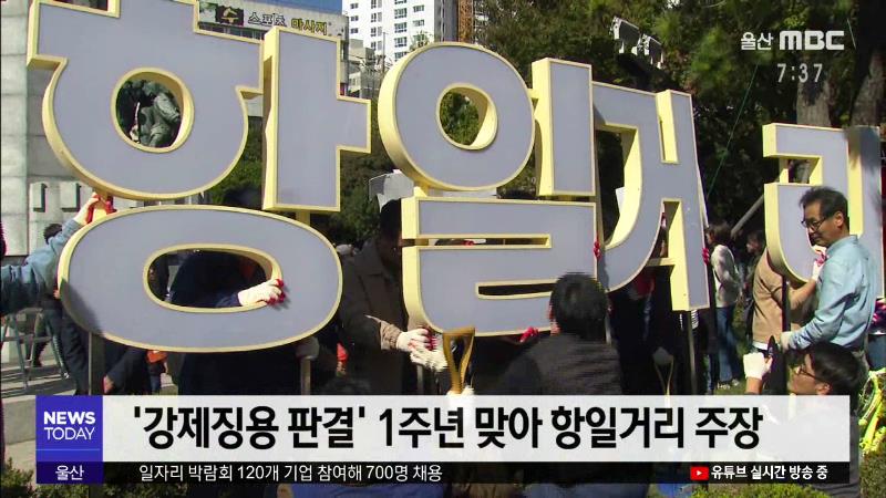 ◀ANC▶ 부산지역 시민단체가 일본 영사관 인근에 '항일거리' 표지판을 설치했습니다. 시민들에게 항일 정신을 널리 알리기 위해서라는데 관할 동구청은 불법 조형물로 규정하고 철거를 검토하고 있습니다. 박준오 기잡니다. ◀리포트▶ 시민단체 회원들과 경찰관 사이에 밀고 당기는 몸 싸움이 벌어집니다. 강제징용판결 1...
