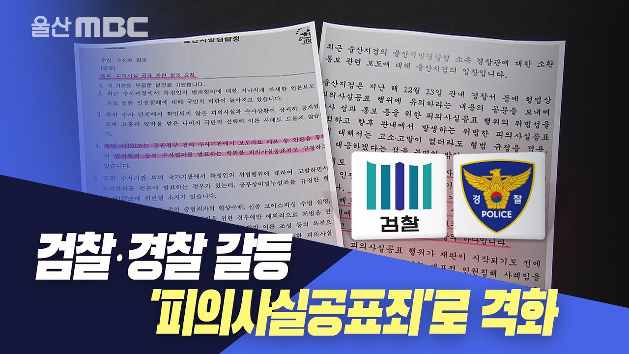 ◀ANC▶ 울산지검이 수사 결과를 언론에 공개한 경찰관에 대해 피의사실 공표 혐의로 수사를 벌이고 있는데요. 경찰이 이의를 제기했지만 검찰 심의위원회에서도 수사를 계속하라고 결론내렸습니다. 만약 경찰관들이 기소된다면 피의사실 공표로 기소되는 전국 첫 사례가 됩니다. 유희정 기자. ◀END▶ ◀VCR▶ 울산지방...
