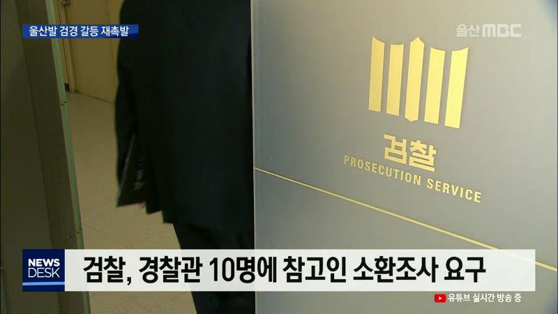◀ANC▶김기현 전 시장의 측근비리 수사를 둘러싼 공방의 또 다른 축은 검찰과 경찰 간의 갈등입니다.쟁점은 다양하지만, 결국은 수사권을 놓고 벌여 왔던검경의 해묵은 갈등이 다시 촉발되는 상황입니다.유희정 기자. ◀END▶ ◀VCR▶최근 울산은 검찰과 경찰 간수사권 조정 갈등의 각축장입니다.경찰이 검사를 상대로 ...